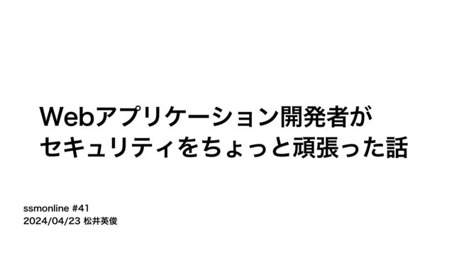 #ssmjp 41 にて、Web アプリケーション開発者目線でセキュリティを頑張った話を書きました。