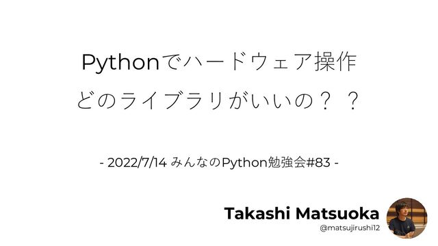 Pythonでハードウェア操作 どのライブラリがいいの? ? Takashi Matsuoka @matsujirushi12 - 2022/7/14 みんなのPython勉強会#83 -