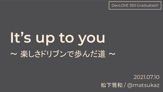 It's up to you 〜 楽しさドリブンで歩んだ道 〜