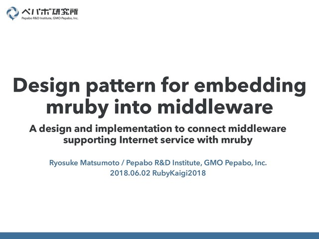at Pepabo R&D Institute • Ph.D of Informatics, Kyoto University • my interests: Operation technology, Internet foundation technology, System programming, Highly integrated multi- tenant architecture, Hosting service, Cloud platform, C, mruby, Rust • Engineering => Technology <= Research 2 Ryosuke Matsumoto @matsumotory