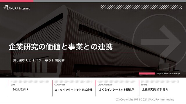 ͘͞ΒΠϯλʔωοτגࣜձࣾ (C) Copyright 1996-2021 SAKURA Internet Inc ͘͞ΒΠϯλʔωοτݚڀॴ اۀݚڀͷՁͱࣄۀͱͷ࿈ܞ 2021/02/17
