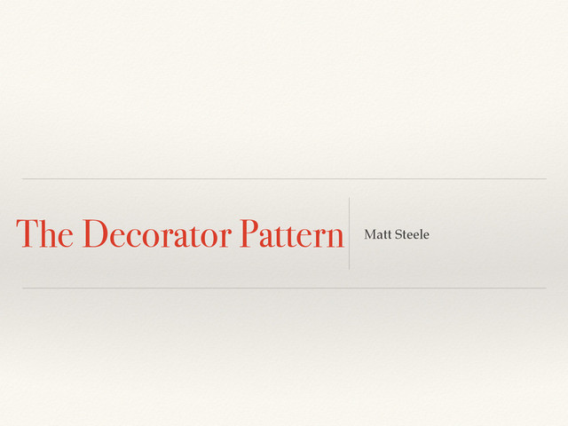 (also known as Wrapper, an alternative naming shared with the Adapter pattern) is a design pattern that allows behavior to be added to an individual object, either statically or dynamically, without affecting the behavior of other objects from the same class.! ❖ - Wikipedia