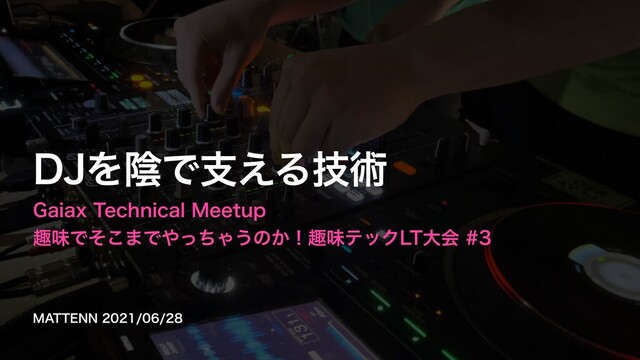 ."55&// %+ΛӄͰࢧ͑Δٕज़ (BJBY5FDIOJDBM.FFUVQ झຯͰͦ͜·ͰͬͪΌ͏ͷ͔ʂझຯςοΫ-5େձ