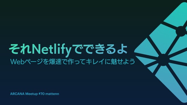 それNetlifyでできるよ - Webページを爆速で作ってキレイに魅せよう