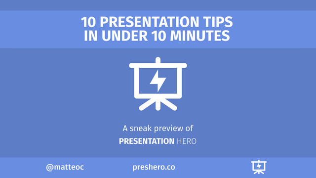 Discover 10 simple actionable tips that can instantly make your next presentation a success. Presentation Hero is a framework to structure, design and deliver any kind of presentation. In this first document we focus on presentation structure: how to captivate your audience, how to structure your narration, how to start, how to conclude your presentation? Discover the simplicity and clarity of Presentation Hero and improve your presentation skills.