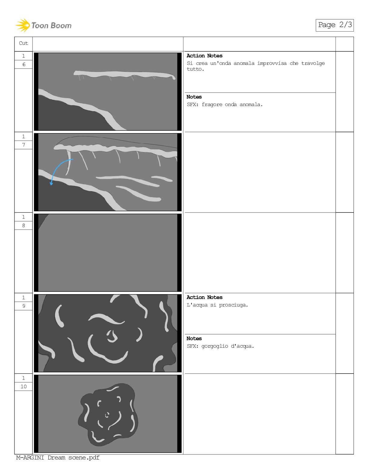 che travolge tutto. Notes SFX: fragore onda anomala. 1 7 1 8 1 9 Action Notes L'acqua si prosciuga. Notes SFX: gorgoglio d'acqua. 1 10 Page 2/3 M-ARGINI Dream scene.pdf