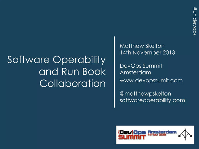 Software operability and run book collaboration - slides from @UNICOMSeminars DevOps Summit in Amsterdam, 14 November 2013