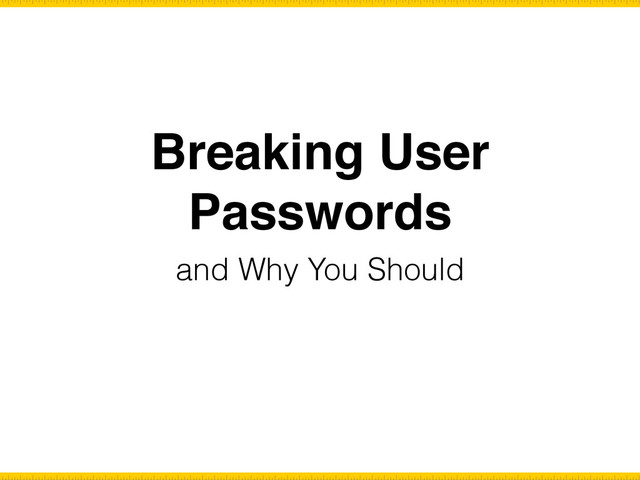 How can we fix ‘broken’ password hashing in our applications? Using the cloud and brute force, applications can be repaired. From code audit to account upgrade, techniques for reversing user hashes will be discussed, and well as success rates, costs, and choosing appropriate security frameworks. Finally, the appropriate applications for sorting methods will be discussed.
