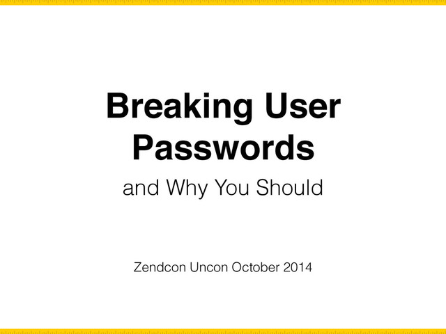 breached, most of the passwords are safe • My cpu power is less than a botnet has available • All the low hanging fruit is gone • Users password will be protected