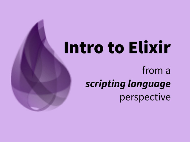 from my talk at pdx-erlang in April 2014. Introducing Elixir from the perspective of someone who works primarily in a scripting language such as Ruby, Javascript or Python.