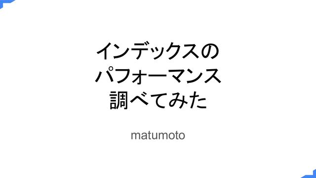 1 matumoto 20 2 Aizu Taro 256 • SELECT id FROM people WHERE name = 'matumoto' というような、nameカラムに対しての検索クエリが きたとき、name_INDEXが使われる • SELECT idFROM people WHERE age = 20 というような、ageカラムに対しての検索クエリがきたらイン デックスは使われず、テーブル全体がそのまま読み込まれる