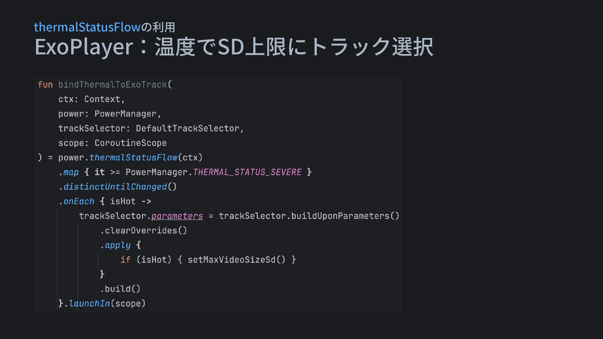 ExoPlayer:温度でSD上限にトラック選択 thermalStatusFlowの利用