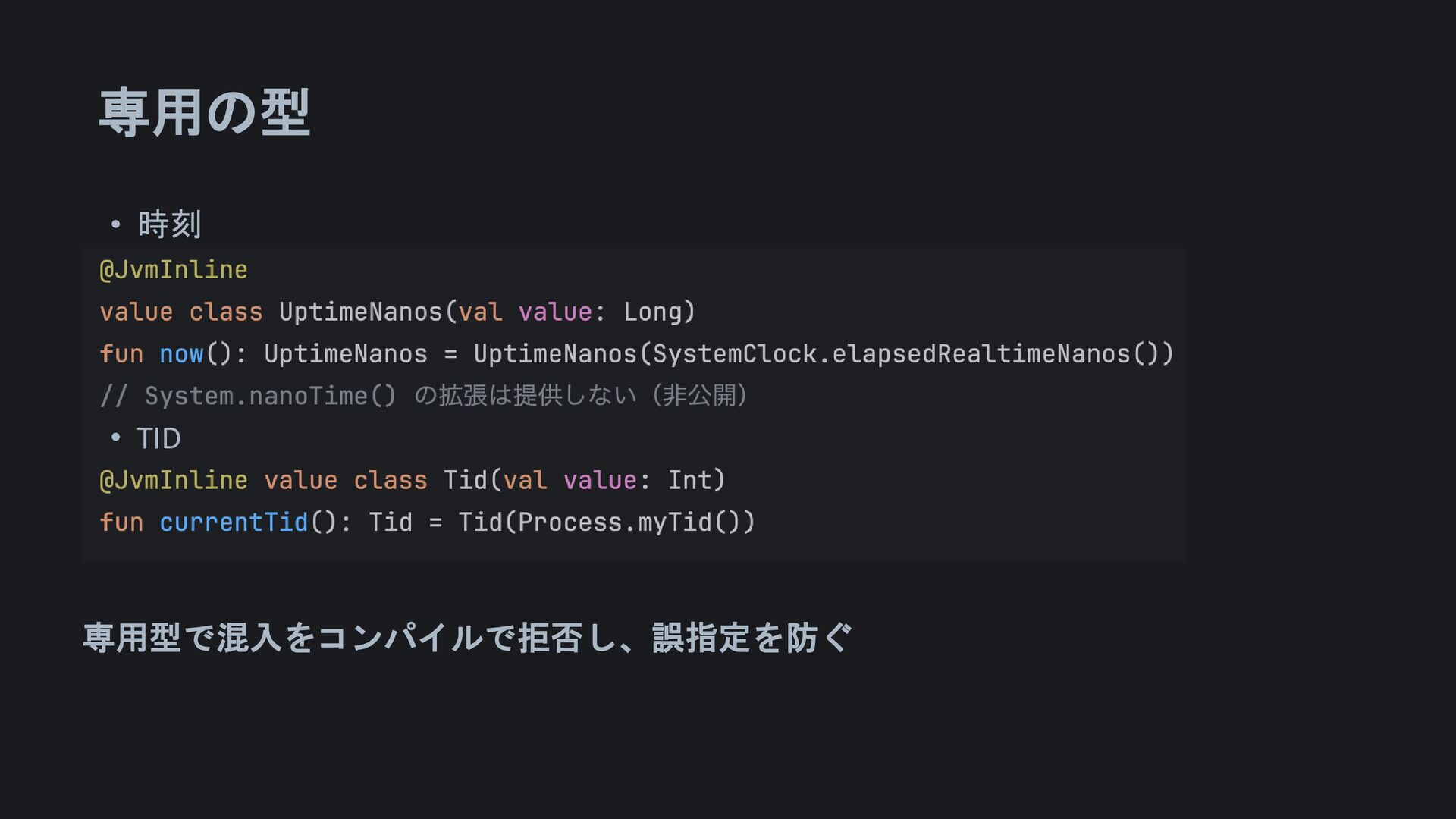 専用の型 • 時刻 • TID 専用型で混入をコンパイルで拒否し、誤指定を防ぐ