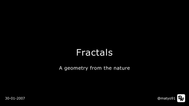 triangle. Then in the second stage, the side of the three triangles and we got a shape twice larger. d= log(3)/ log(2) = 1.58 For S(3), we got d = log(27)/log(8) = 1.58 Dimension of the Sierpinsky’s triangle @matyo91 30-01-2007