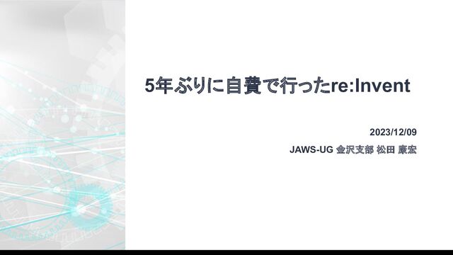 5年ぶりに自費で行ったre:Invent 2023/12/09 JAWS-UG 金沢支部 松田 康宏