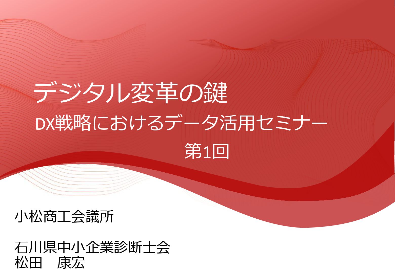 小松商工会議所にて開催されましたデジタル変革の鍵 DX戦略におけるデータ活用セミナーにて担当させていただきました第1回目のスライドです