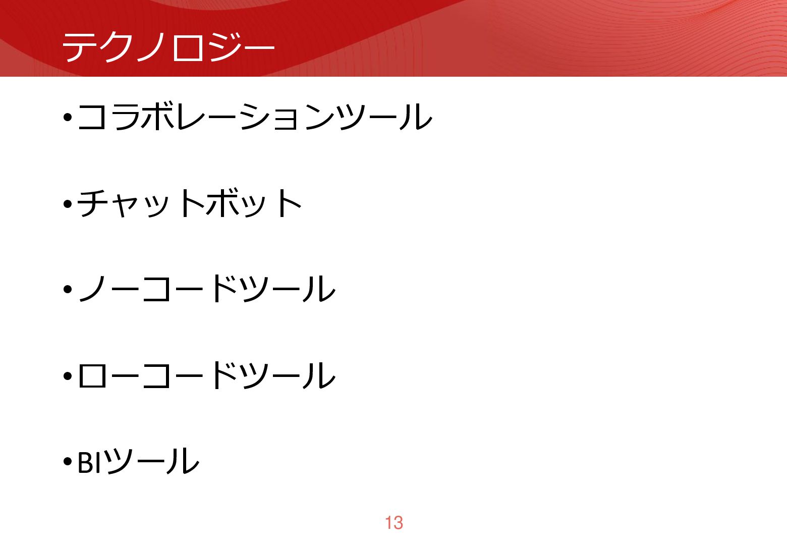 •チャットボット •ノーコードツール •ローコードツール •BIツール