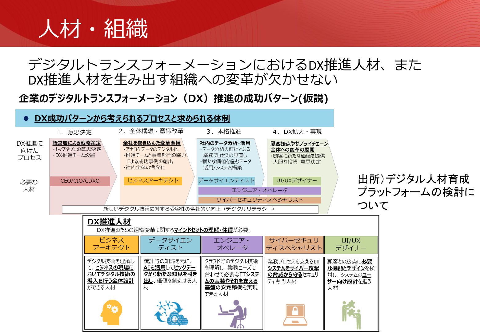 DX推進人材を生み出す組織への変革が欠かせない 出所)デジタル人材育成 プラットフォームの検討に ついて