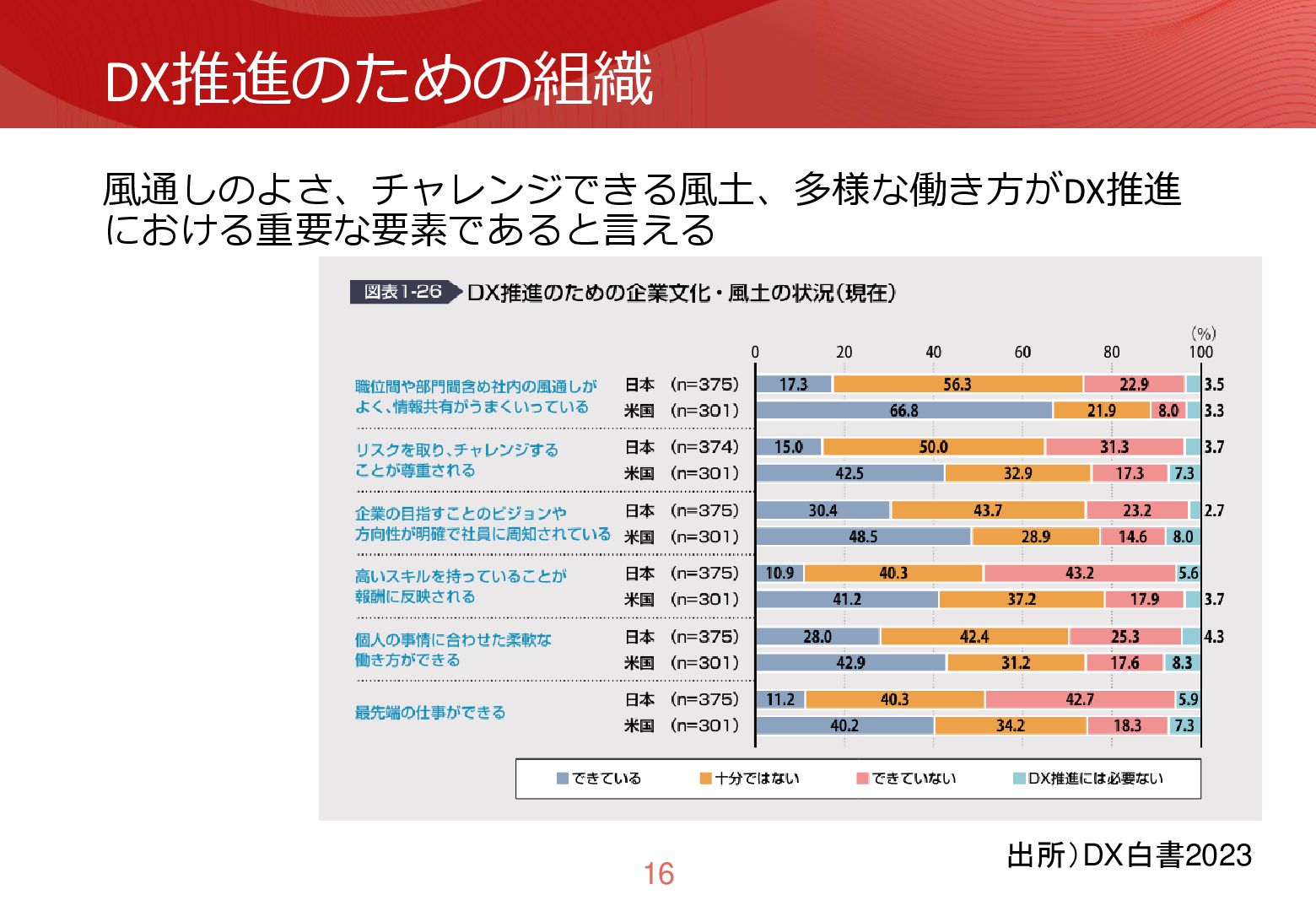 風通しのよさ、チャレンジできる風土、多様な働き方がDX推進 における重要な要素であると言える