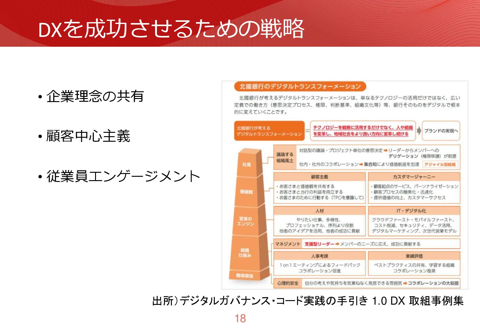 企業理念の共有 • 顧客中心主義 • 従業員エンゲージメント 出所)デジタルガバナンス・コード実践の手引き 1.0 DX 取組事例集