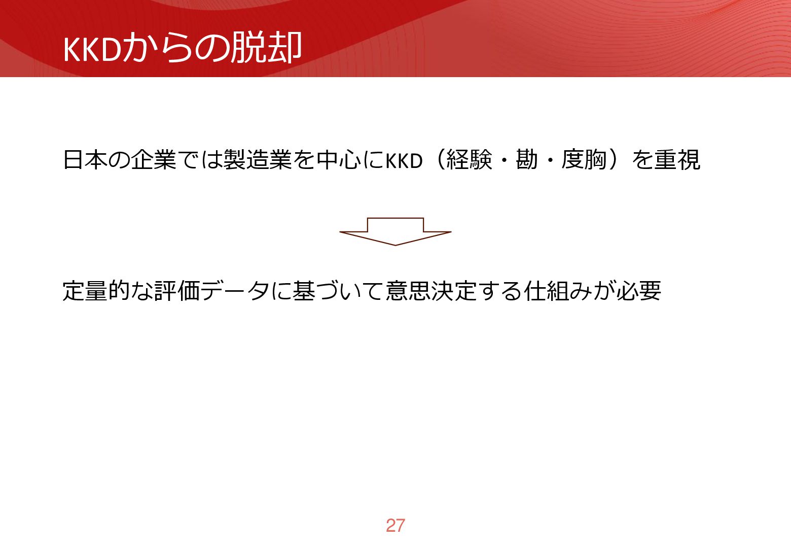 © 2023 i’s FACTORY co., Limited Confidential 27 KKDからの脱却 日本の企業では製造業を中心にKKD(経験・勘・度胸)を重視