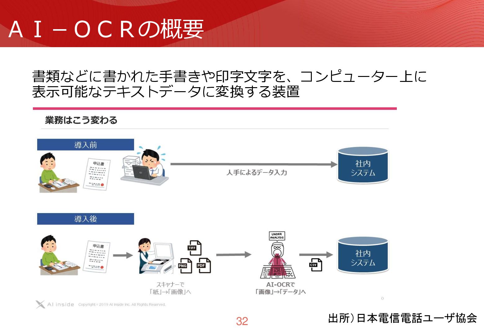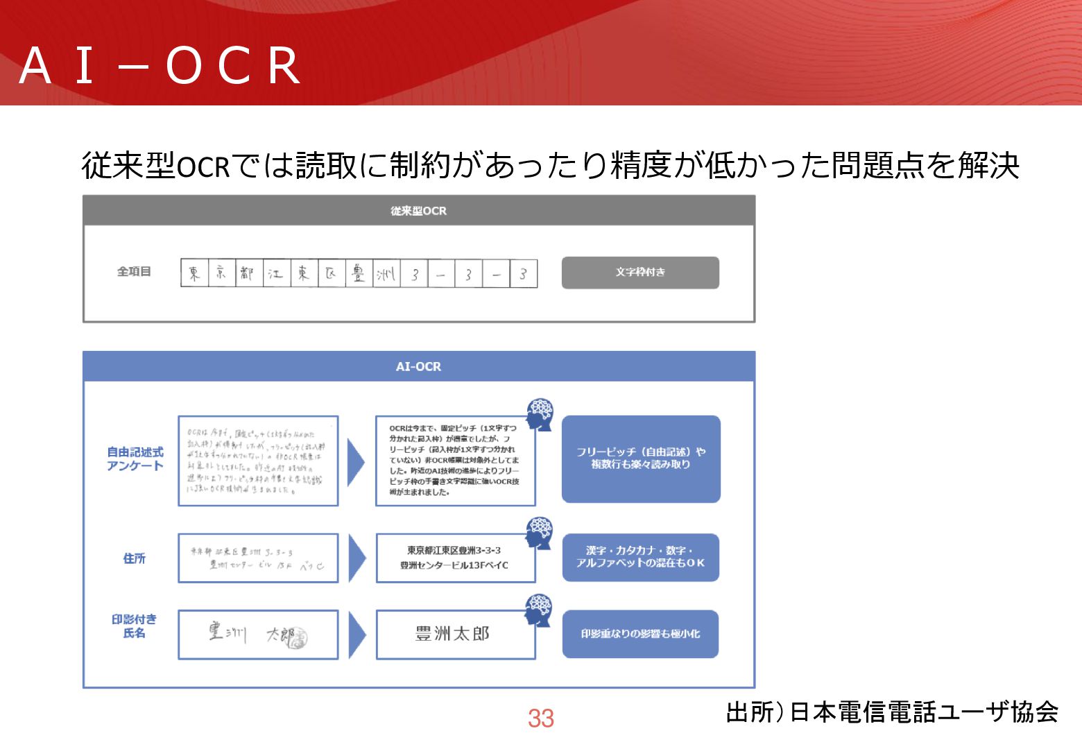 © 2023 i’s FACTORY co., Limited Confidential 32 AI-OCRの概要 書類などに書かれた手書きや印字文字を、コンピューター上に