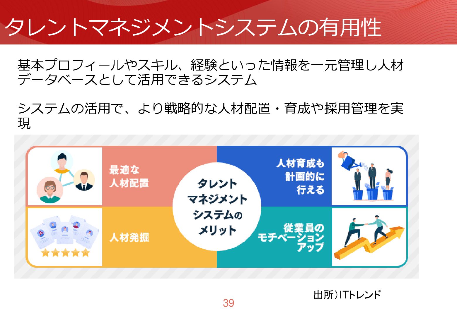 データベースとして活用できるシステム システムの活用で、より戦略的な人材配置・育成や採用管理を実 現 出所)ITトレンド