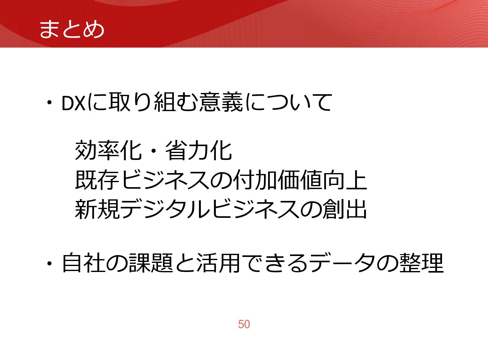 © 2023 i’s FACTORY co., Limited Confidential 50 まとめ ・DXに取り組む意義について