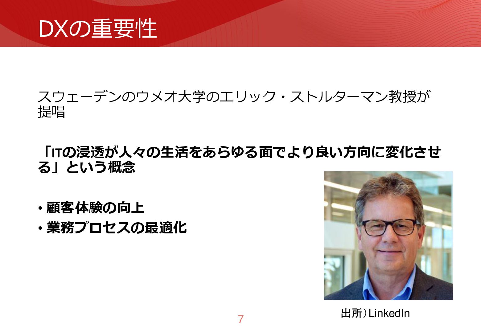 提唱 「ITの浸透が人々の生活をあらゆる面でより良い方向に変化させ る」という概念 • 顧客体験の向上 • 業務プロセスの最適化 出所)LinkedIn