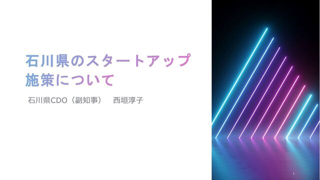 JAWS-UG金沢 x AWS Startup Community プレゼンツ『北陸でStartupをはじめよう・みつけよう』のイベントにて石川県 副知事 西垣 淳子 氏にご登壇いただいたセッションのスライドです。