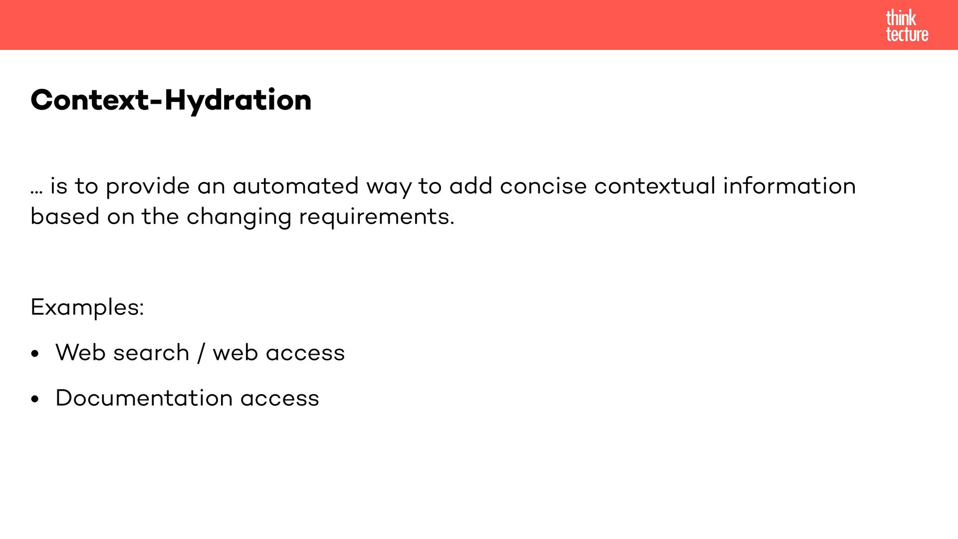 contextual information based on the changing requirements. Examples: • Web search / web access • Documentation access Context-Hydration