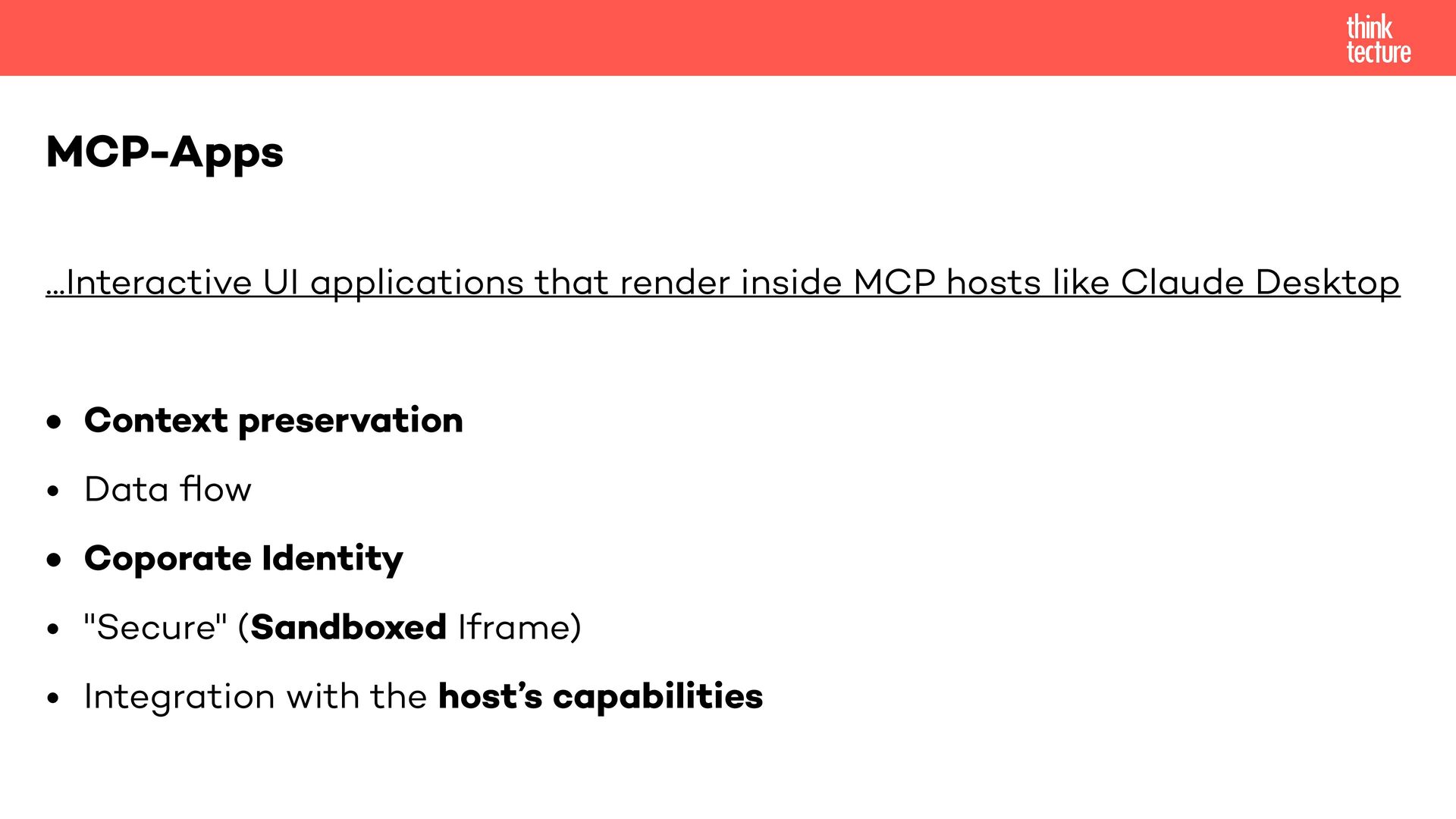 Desktop • Context preservation • Data fl ow • Coporate Identity • "Secure" (Sandboxed Iframe) • Integration with the host’s capabilities MCP-Apps