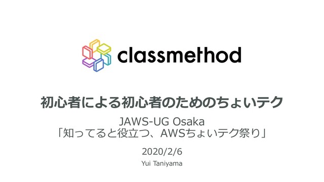 初⼼者による初⼼者のためのちょいテク JAWS-UG Osaka 「知ってると役⽴つ、AWSちょいテク祭り」 2020/2/6 Yui Taniyama 1