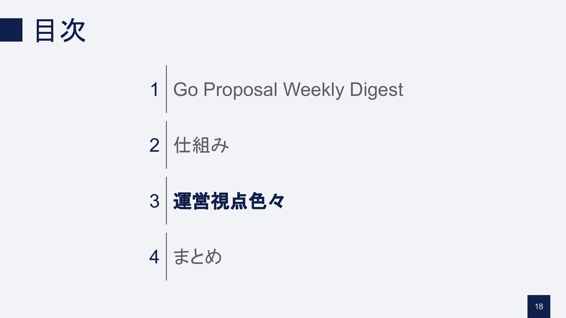 目次 18 1 Go Proposal Weekly Digest 2 仕組み 3