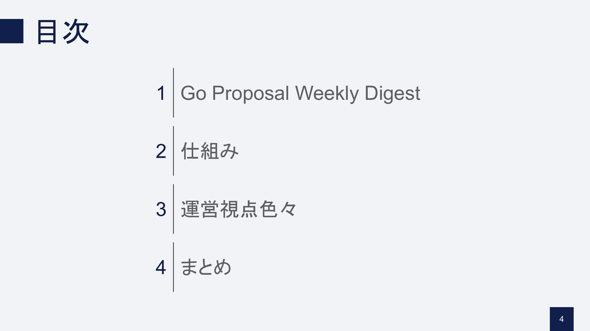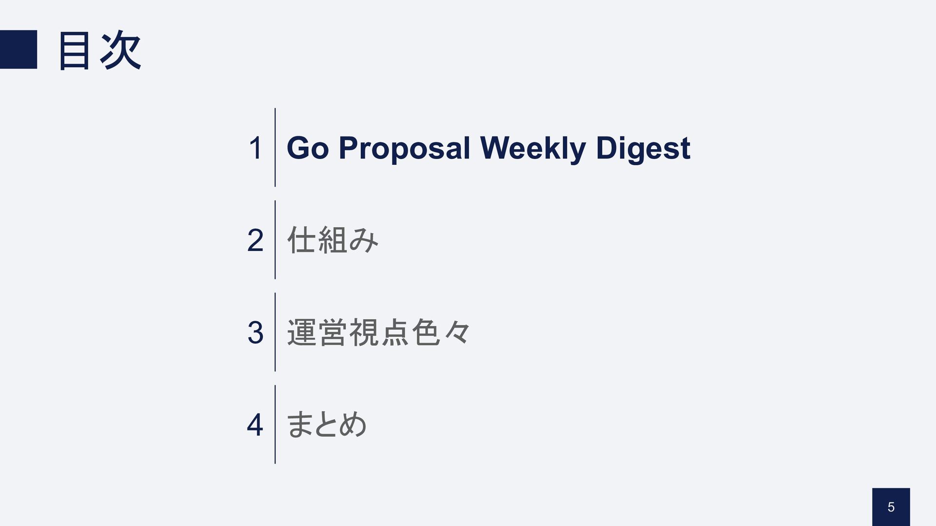 目次 4 1 Go Proposal Weekly Digest 2 仕組み 3