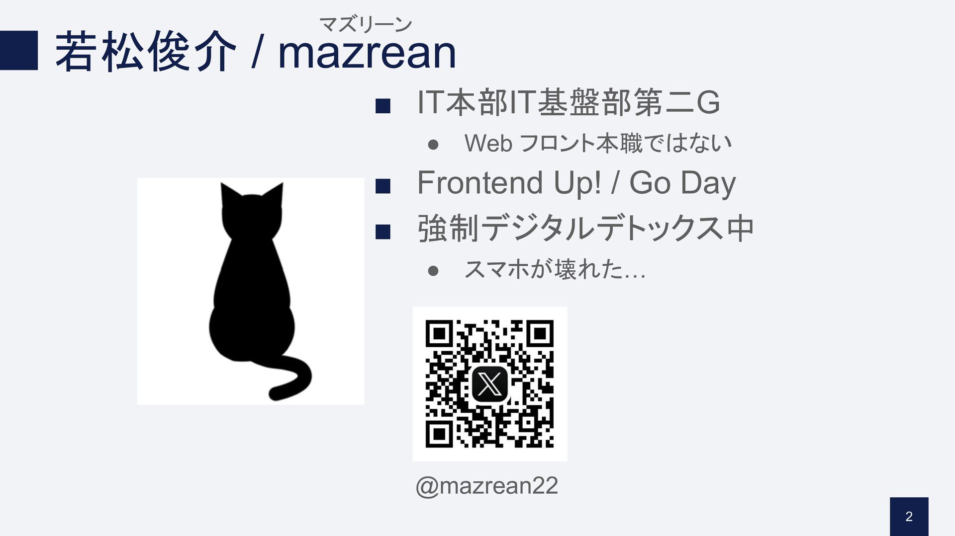 若松俊介 / mazrean ▪ IT本部IT基盤部第二G • Web フロント本職ではない ▪ Frontend