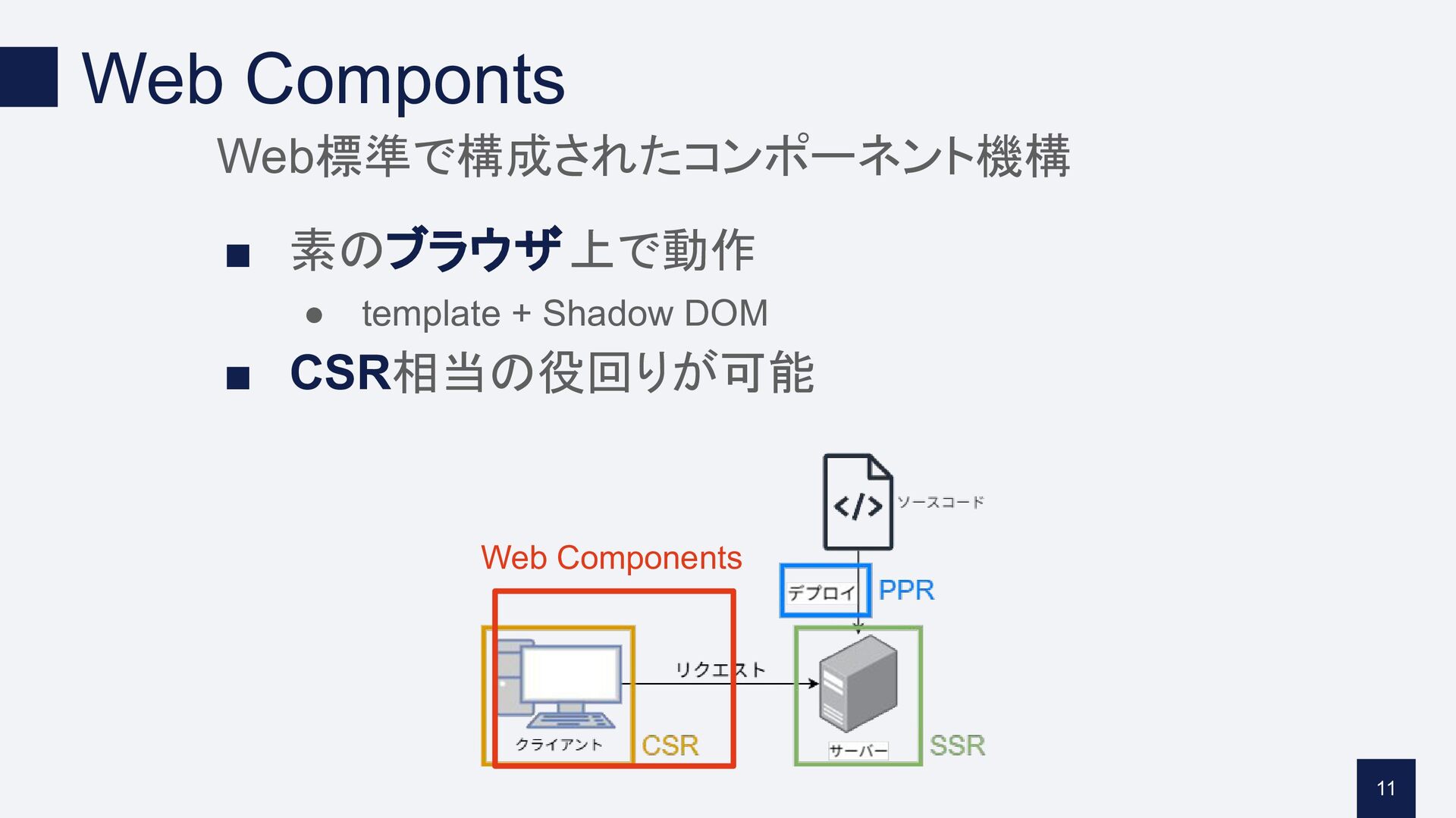 ▪ CSR相当の役回りが可能 11 Web Components