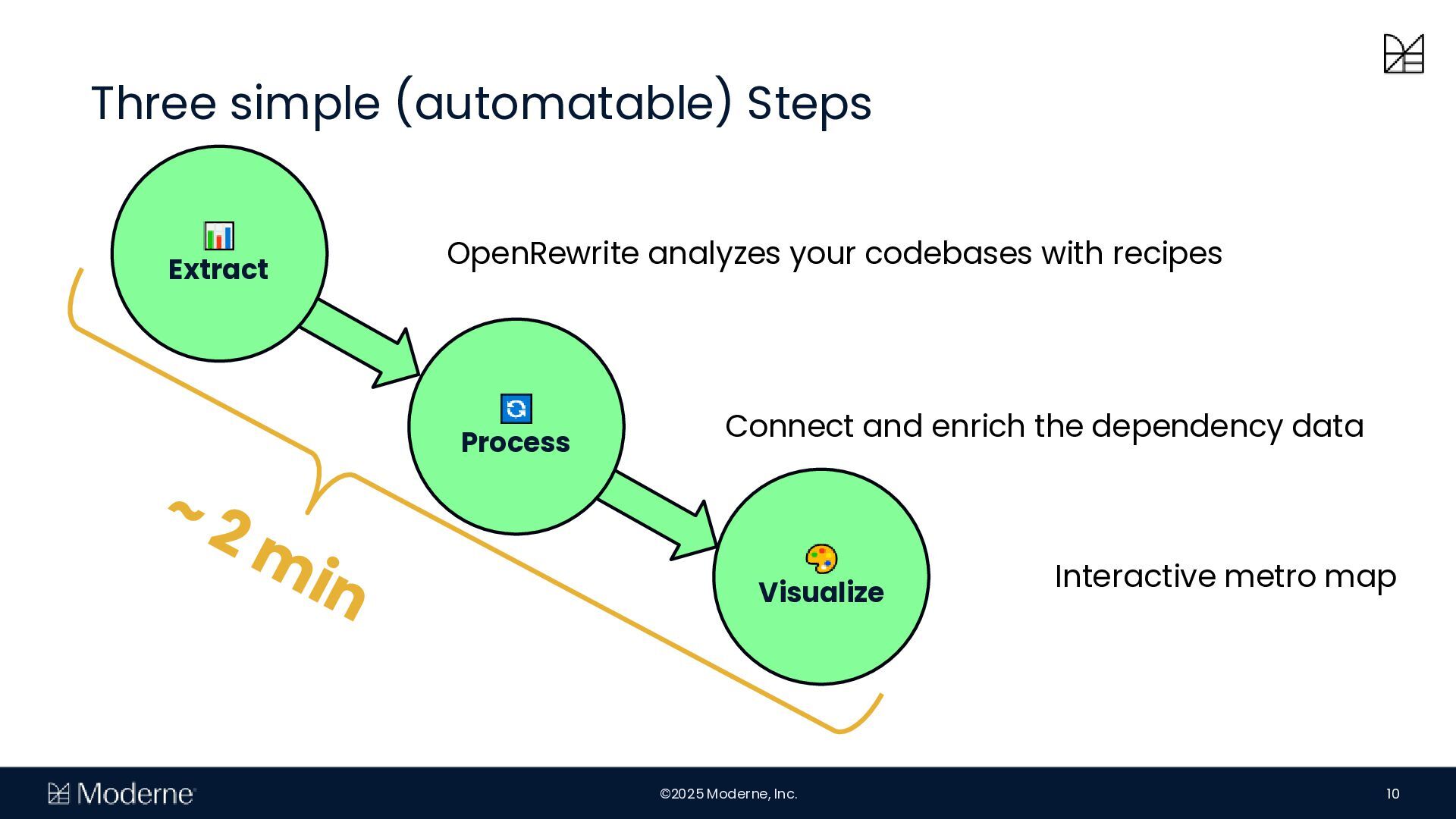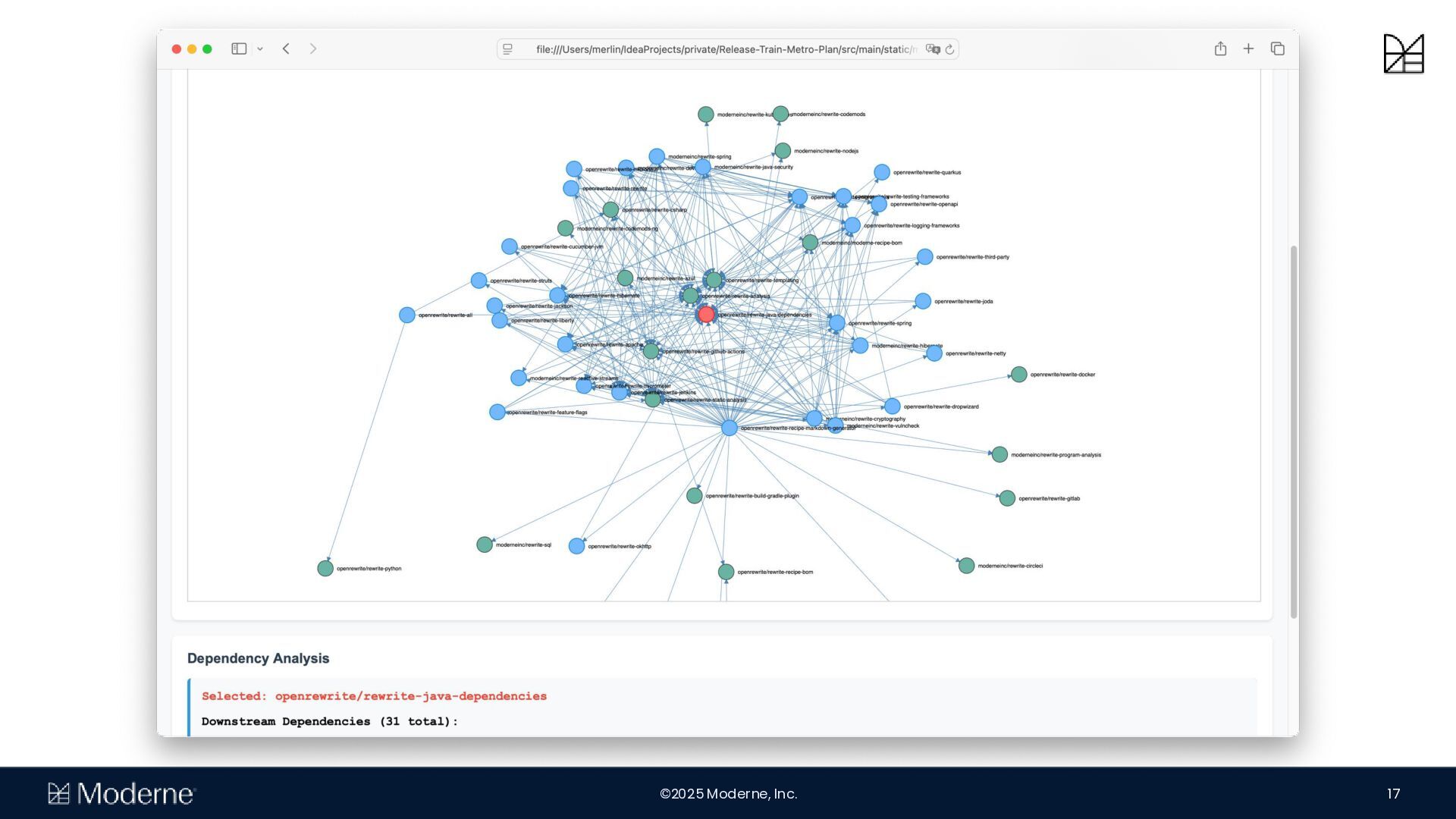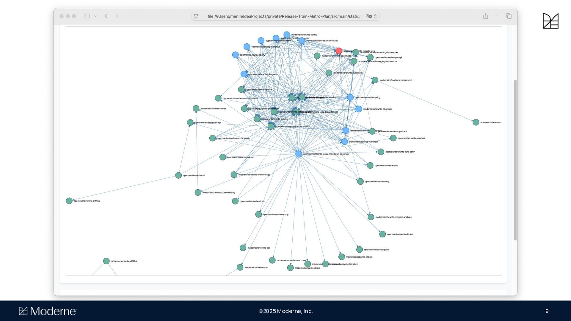 By analyzing complex multilayer dependencies between your components, you can extract the needed information and materialize the Metro plan of your release train. OpenRewrite's DataTable feature makes it easy to extract this information and visualize it. And what's more, with OpenRewrite, these analyses are efficiently scalable for hundreds of connections, making it perfect for complex codebases with many interdependent components.