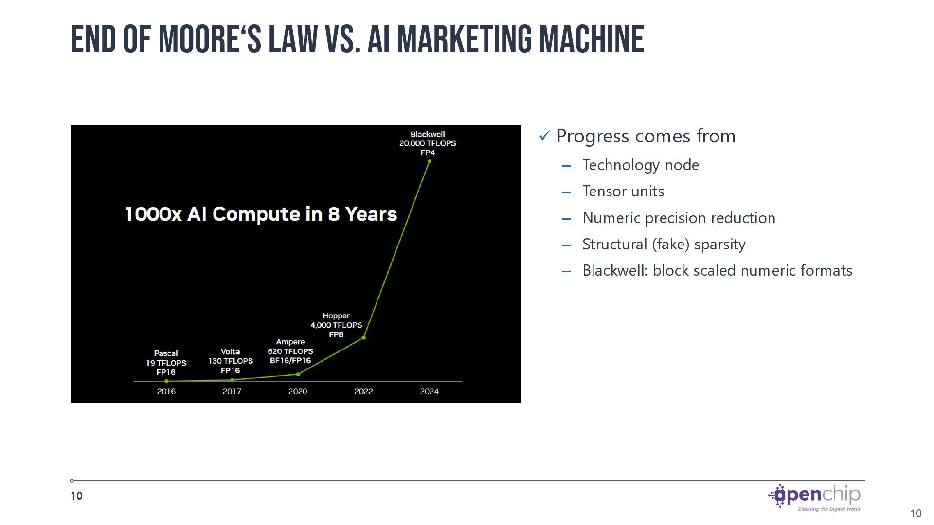 units – Numeric precision reduction – Structural (fake) sparsity – Blackwell: block scaled numeric formats 10 End of Moore‘s Law vs. AI Marketing Machine