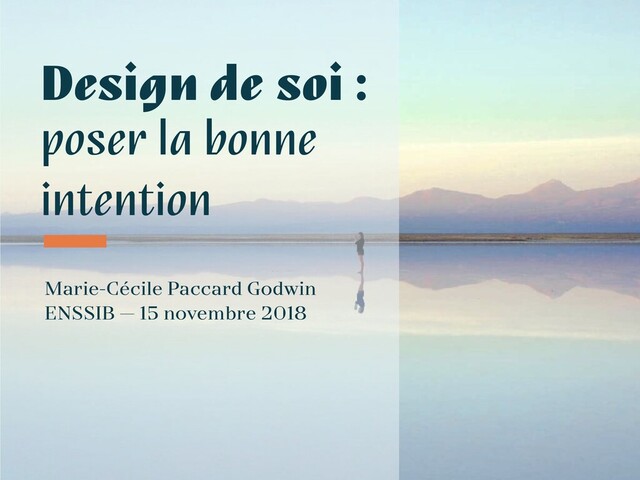 Une conférence donnée à la promotion 2018-2019 à l'ENSSIB sur le design de soi (terme proposé par Marie Guillaumet) et la définition de ses valeurs et objectifs.
