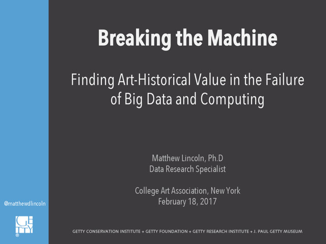 However, what might a digital art history look like that deploys machine learning precisely in order to see where the machine breaks? This paper will explore the conditions in which computational models fail to predict or classify, demonstrating how these instances can provoke new questions or analytical approaches. I will discuss a case study in which supervised machine classification was used to analyze a database of seventeenth-century Haarlem still life paintings. The computer's comparative ability, or inability, to discern the shape of different artists' oeuvres based on limited information about composition or subject matter suggested how these painters, as well as those who imitated them, defined their artistic personae. Where the machine breaks, and where it succeeds, also help to surface how decisions as fundamental as one's chosen framework for visual description can fundamentally alter the synthetic historical narratives that one ultimately composes.