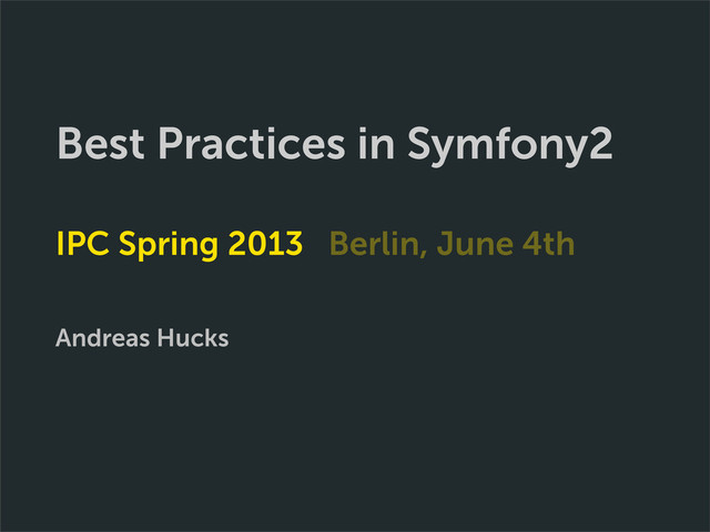 Best Practices in Symfony2 IPC Spring 2013 Berlin, June 4th