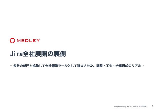 Copyright© Medley, Inc. ALL RIGHTS RESERVED. 1 - 多数の部門と協働して全社標準ツールとして確立させた、調整・工夫・合意形成のリアル -