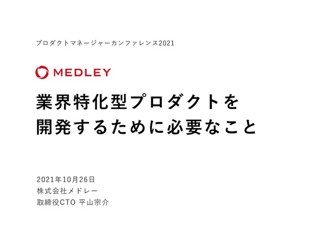 業界特化型プロダクトを開発するために必要なこと 平山 宗介(株式会社メドレー 取締役CTO)