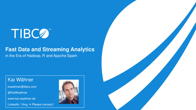 The audience will understand when to use open source frameworks such as Apache Storm, Apache Spark or Esper, and powerful engines from software vendors such as IBM InfoSphere Streams or TIBCO StreamBase. Live demos will give the audience a good feeling about how to use these frameworks and tools.