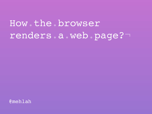 engine! http://limpet.net/mbrubeck/2014/08/08/toy-layout-engine-1.html HTML5 Rocks How Browsers works http://www.html5rocks.com/en/tutorials/internals/howbrowserswork Rendering in Webkit https://www.youtube.com/watch?gl=US&v=RVnARGhhs9w Website Performance Optimization https://developers.google.com/web/fundamentals/performance/ critical-rendering-path/?hl=en