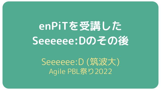enPiTを受講した Seeeeee:Dのその後 Seeeeee:D (筑波大) Agile PBL祭り2022