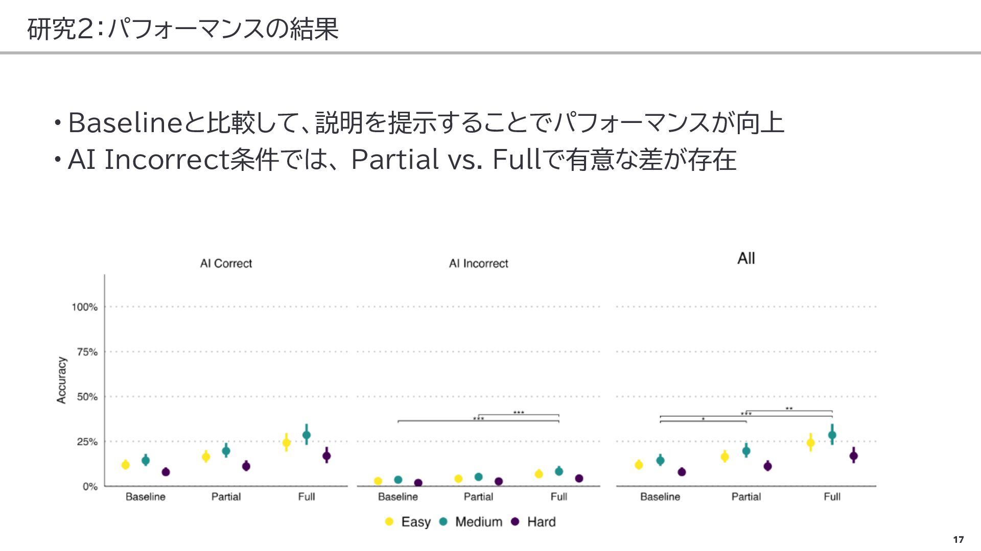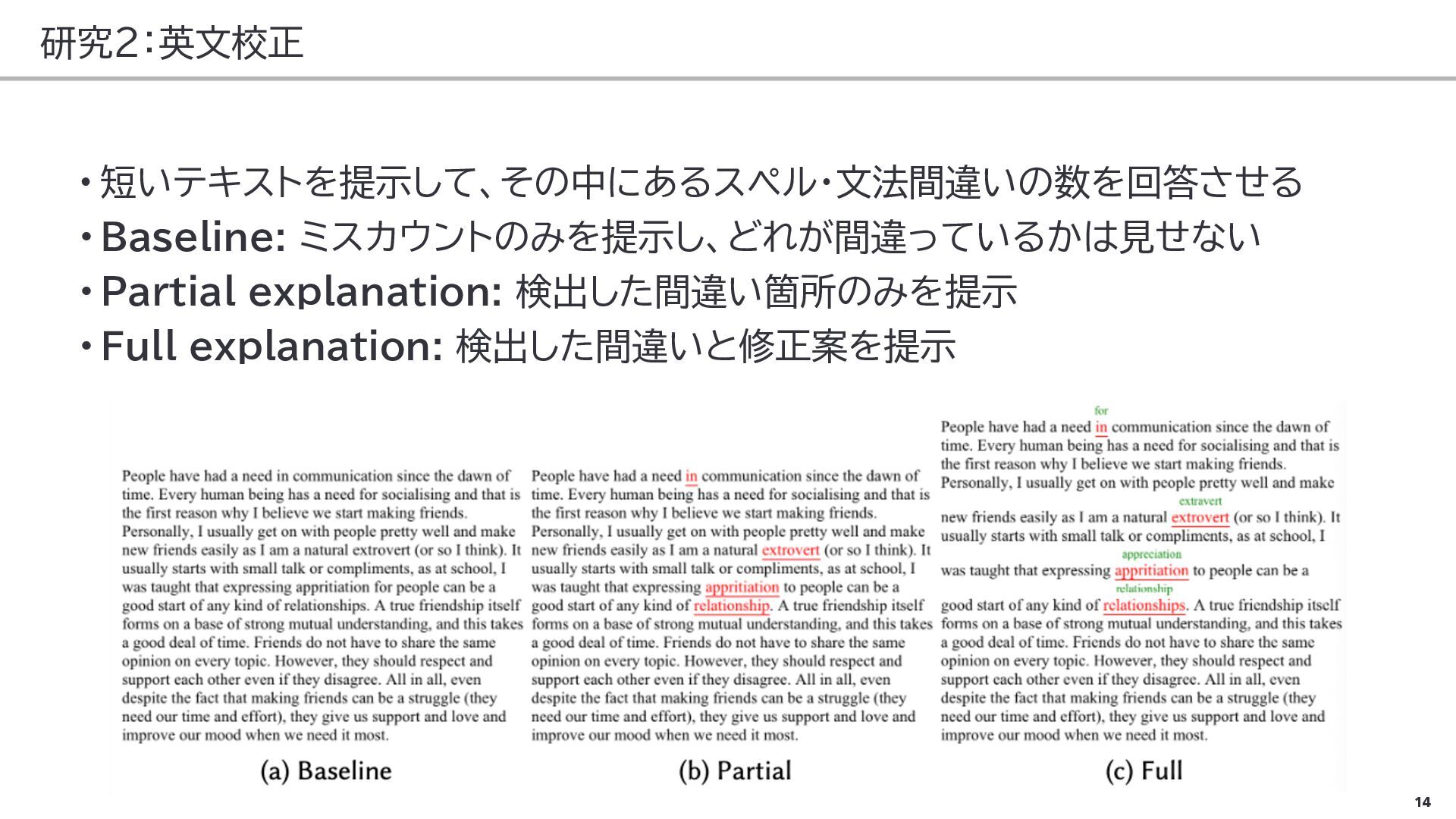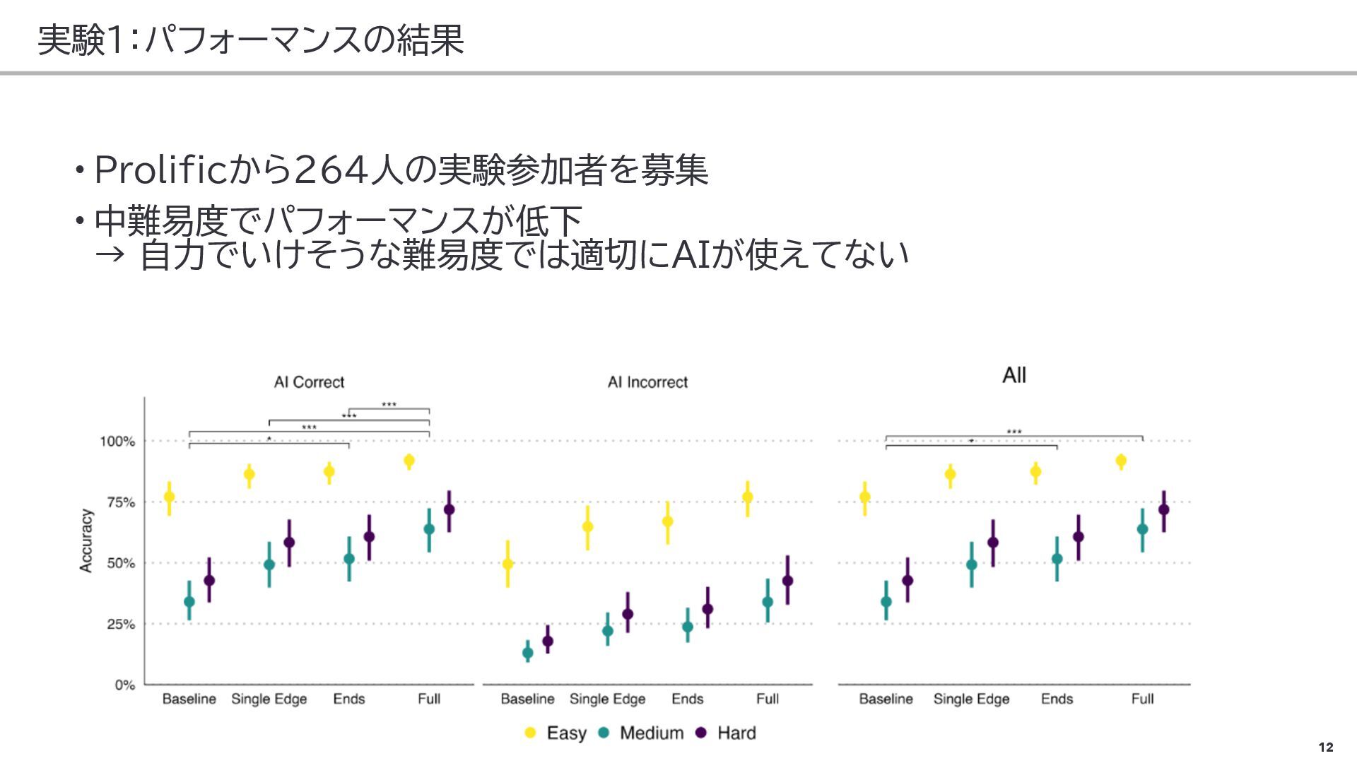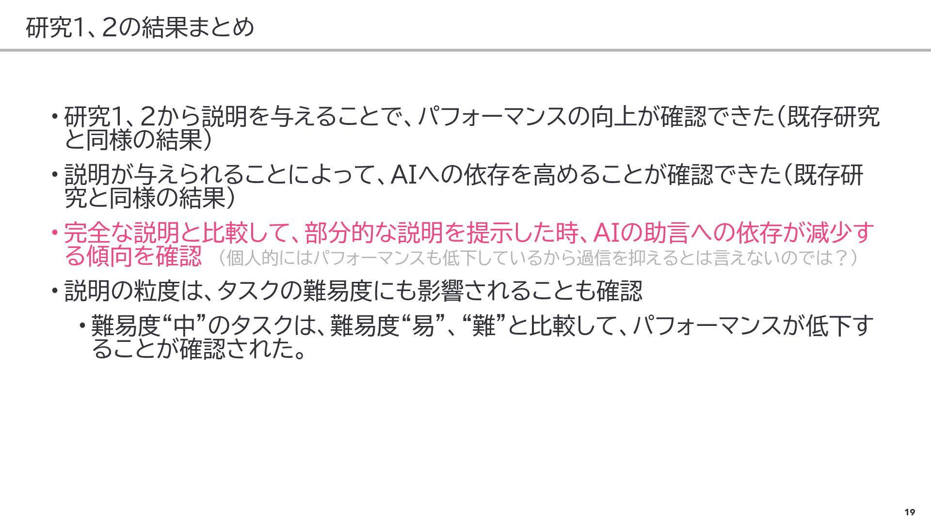 AI Systems Through Partial Explanations • 著者:SANDER DE JONG, VILLE PAANANEN, BENJAMIN TAG, NIELS VAN BERKEL • 発表:CSCW 2025 https://dl.acm.org/doi/pdf/10.1145/3710946 ゴール :AIの助言を“ちょうどよく”採用されるようにする 課題 :AIが間違っていても、説明がわかりやすいと、つい鵜呑みする(=過信) アイデア:説明をあえて部分的して、ユーザに自分の頭で考えさせる(=認知強制) 結果 :AIを過信するリスクが減少する