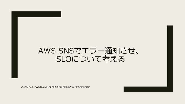 AWS SNSでエラー通知させ、 SLOについて考える 2024/7/8 JAWS-UG SRE支部#9 初心者LT大会 @melanmeg