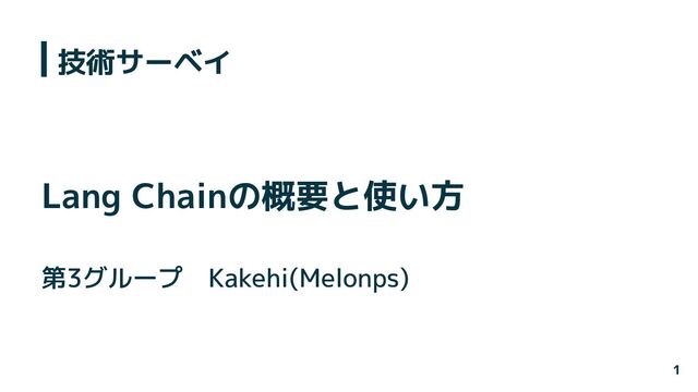 Lang Chainの概要と使い方 第3グループ Kakehi(Melonps) 技術サーベイ 1